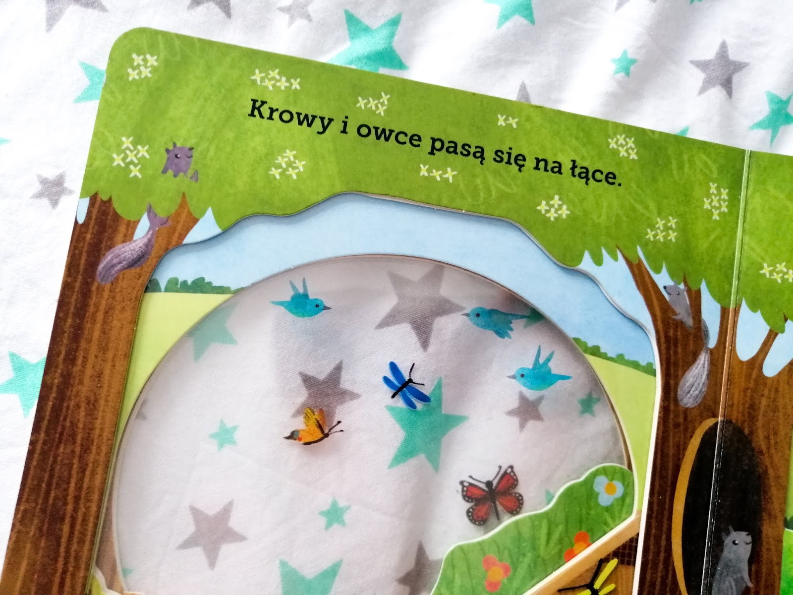 Obrazki, które znajdują się we wszystkich trzech książeczkach, są wyjątkowe. Po pierwsze – przyciągają wzrok małego czytelnika. Mój syn nie przewróci strony, dopóki nie dowie się, jak nazywają się poszczególni „bohaterowie”. Po drugie: są bardzo realistyczne i wiernie oddają prawdziwy wygląd zwierząt, dzięki czemu dzieci poznają i odkrywają świat. Po trzecie autorzy zadają pytania, a czytelnik, żeby znaleźć na nie odpowiedź, musi dokładnie przyjrzeć się ilustracjom. Dodatkowo każda z tych książeczek posiada przezroczyste okienko, co czyni je wyjątkowymi i unikalnymi, bo jeszcze takich pozycji nie spotkałam.