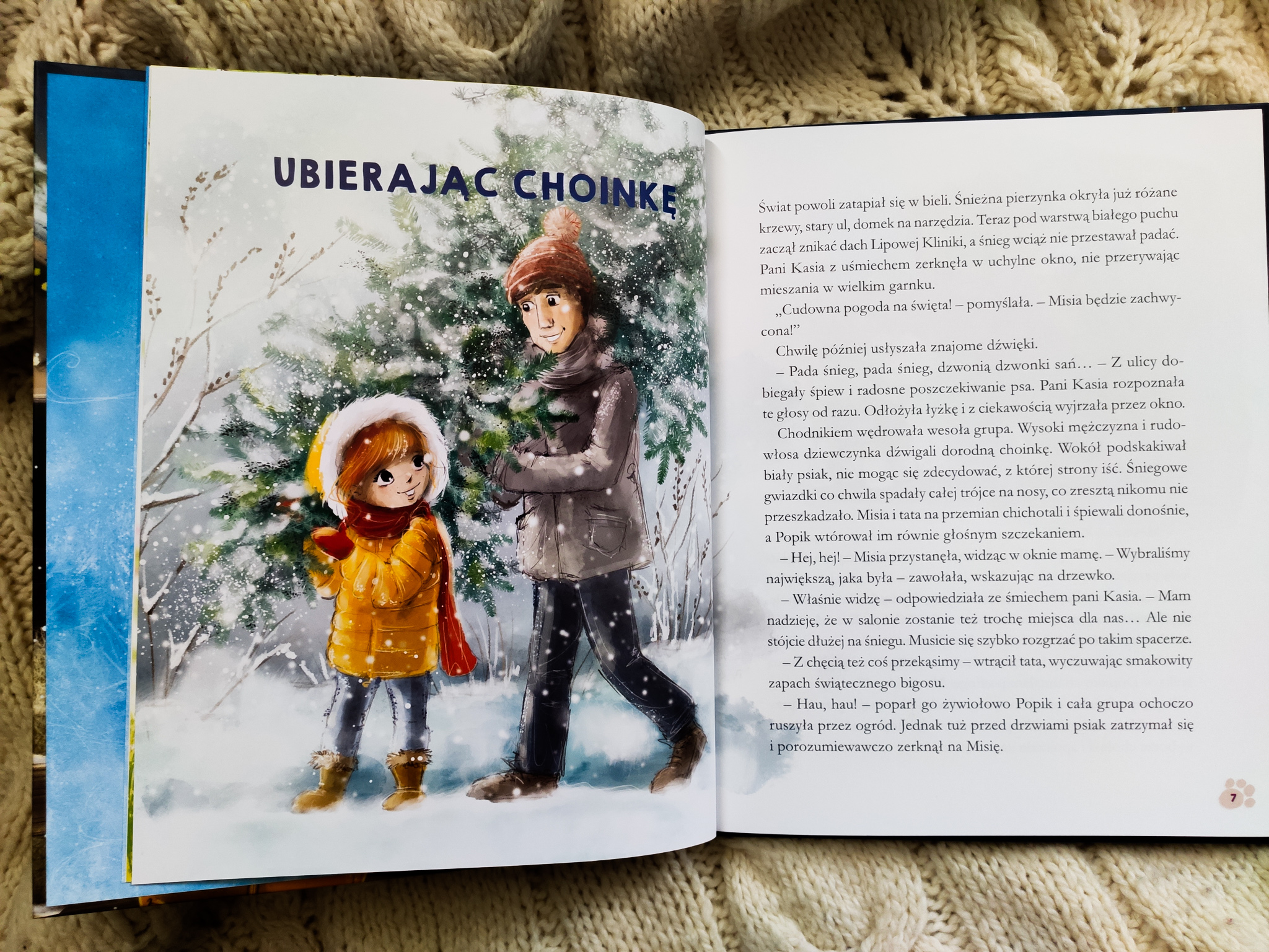 „Misia i jej mali pacjenci. Świąteczne opowieści” wprowadzi was w klimat zbliżających się Świąt Bożego Narodzenia. Mała dziewczynka pomaga zwierzakom i tym samym uczula najmłodszych na dbałość o zwierzęta. Warto dbać i pomagać bezbronnym, którzy w zimie marzną i mają problem z odnalezieniem pokarmu. To tylko taki przykład. W świątecznych opowieściach znajdują się trzy opowiadania – można je sobie dawkować tak jak ja, ale także przeczytać całą opowieść na jeden raz. Ta książka może posłużyć do nauki samodzielnego czytania.