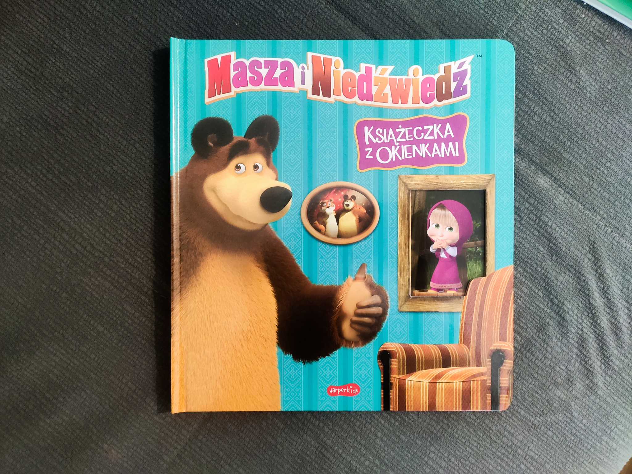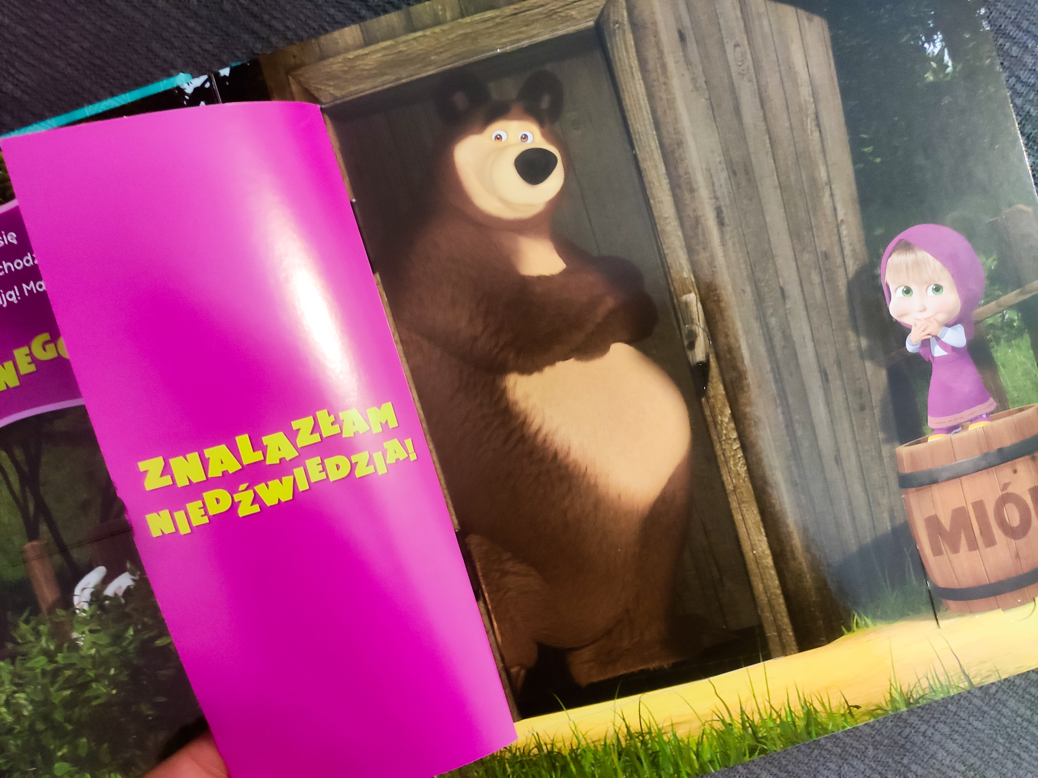Uwielbiam animację o przygodach Maszy i Niedźwiedzia. Wiem, że wiele rodziców dość negatywnie się o niej wypowiada, ale oglądałam ją jeszcze przed tym, zanim rozpoczęłam rozdział życia zatytułowany macierzyństwo. Książeczki o przygodach Maszy są często czytane u nas w domu, ale prawdziwym hitem jest ta z otwieranymi okienkami.