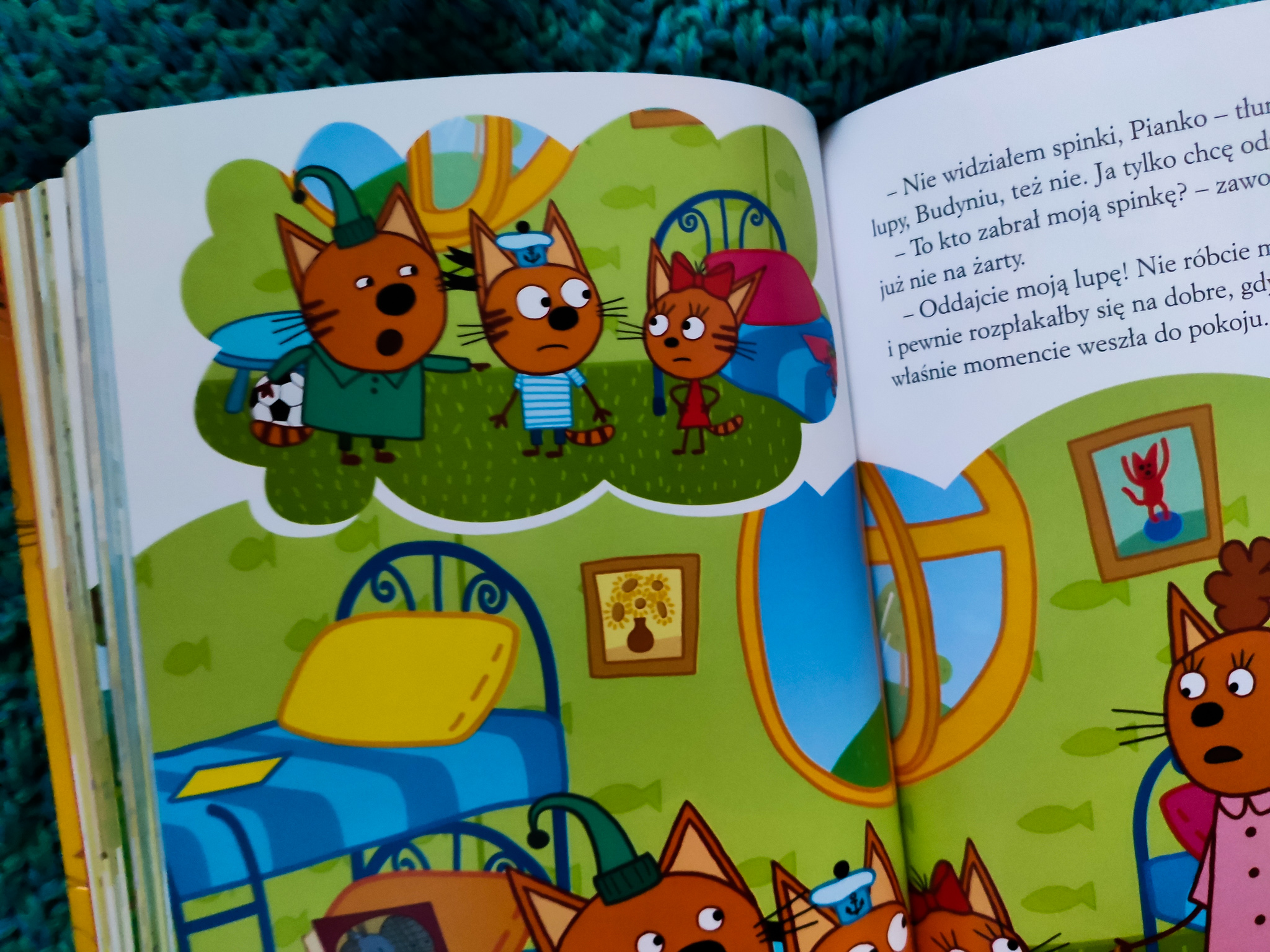 Przygody bohaterów są bardzo ciekawe. Widać, że kotki mają tysiąc pomysłów na minutę, lubią spędzać czas z przyjaciółmi i rodziną, a ich wyobraźnia pracuje na wysokich obrotach. Jeżeli nie znacie Kot-o-ciaków i ich słynnego zawołania miau-ou!, to nic straconego. Nie trzeba znać animacji, żeby polubić tę ciekawą i kochającą się rodzinkę. Bardzo pomocne jest krótkie przedstawienie postaci na pierwszych stronach – każdy z bohaterów ma krótką biografię, dzięki czemu w trakcie lektury postacie nam się nie mylą, i nie tracimy czasu na zastanawianie się, kto jest kim i jaką rolę pełni.