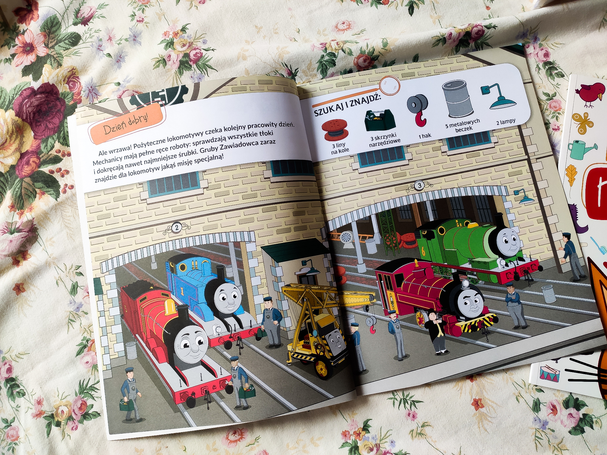 Dzięki książce o Tomku i jego przyjacielach przeniesiemy się na wyspę Sodor, gdzie parowozy codziennie wykonują swoje obowiązki, ale i również przeżywają niesamowite przygody. To istna gratka dla wszystkich fanów bajki. Na każdej stronie znajduje się jedna ilustracja, dzięki której możemy odwiedzić jedno miejsce na wyspie – zajezdnie, warsztat, przystań czy farmę. Bohaterom towarzyszcyć będziemy również w wielkim wyścigu. Na każdej stronie autorzy umieścili przedmioty, w różnej licznie, które mały czytelnik musi wyszukać. Dzięki temu ćwiczy swoją spostrzegawczość, refleks, a także uczy się liczyć!