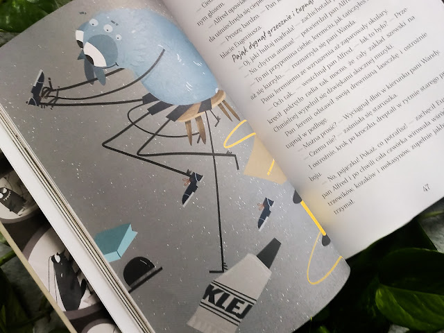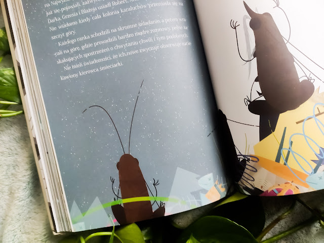 Książka okraszona jest cudownymi ilustracjami, które niesamowicie pasują do tekstu i dodają mu jeszcze więcej uroku i uśmiechu. Roksana Robok ukazała naszych bohaterów w lekko przerysowany i groteskowy sposób, ale jest w tym piękno!