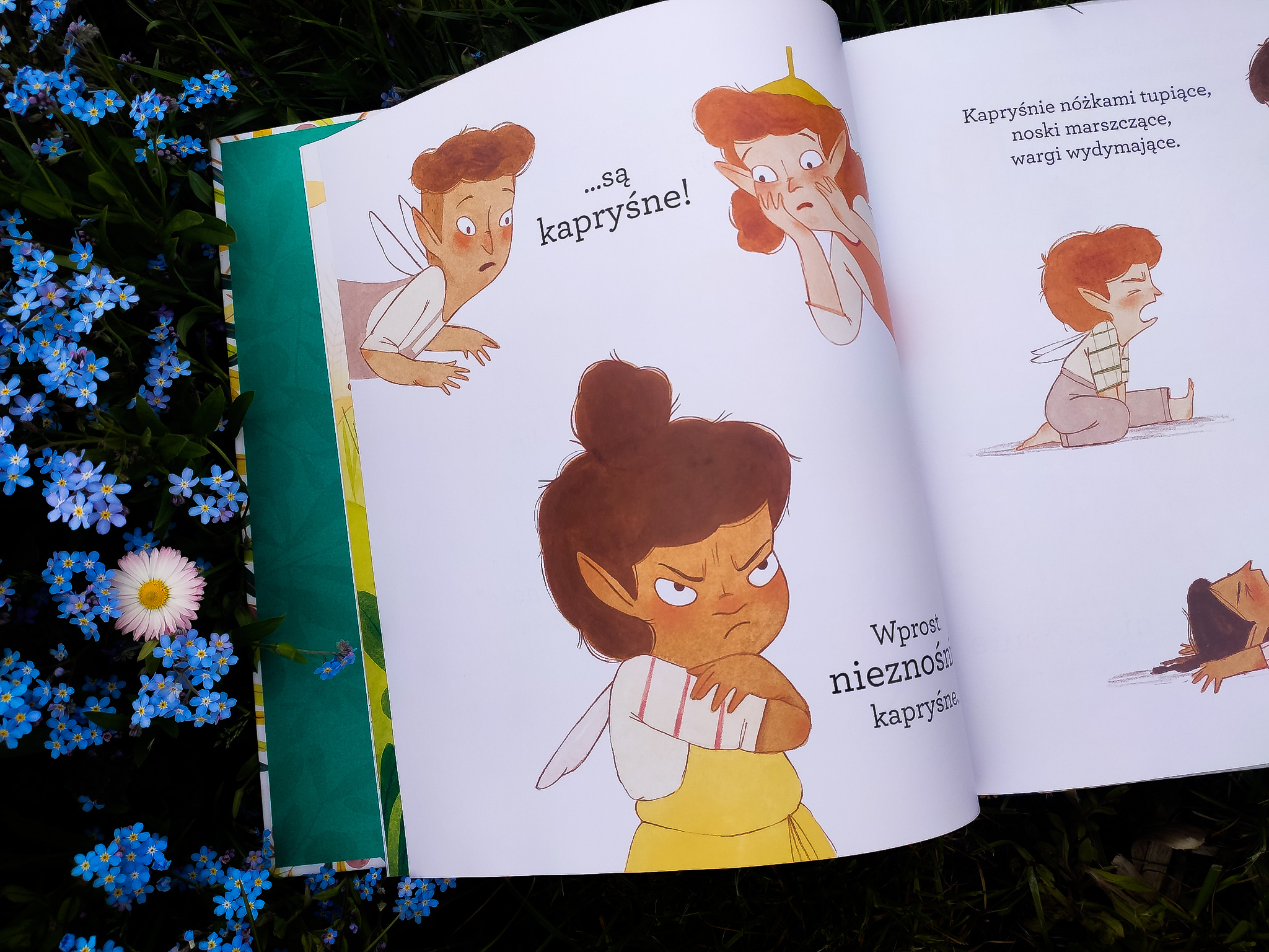Książeczka przeznaczona jest dla dzieci powyżej 4 roku życia, ale mój trzylatek ją uwielbia. Obserwując poczynania wróżek, które niesamowicie kapryszą, tupią, można dostrzec, jak sami zachowujemy się w podobnych sytuacjach i jaką przykrość sprawiamy innym bohaterom. Ta lektura to nie tylko świetna rozrywka, bo losy wróżek mogą rozbawić i zadziwić, ale także stanowi pretekst do rozmów o emocjach! Można wiele wyczytać z twarzy małych bohaterów, a odgadywanie emocji na podstawie rysów twarzy jest rewelacyjnym ćwiczeniem. Co więcej, jak wspomniałam, możemy porozmawiać o złości i byciu kapryśnym.
