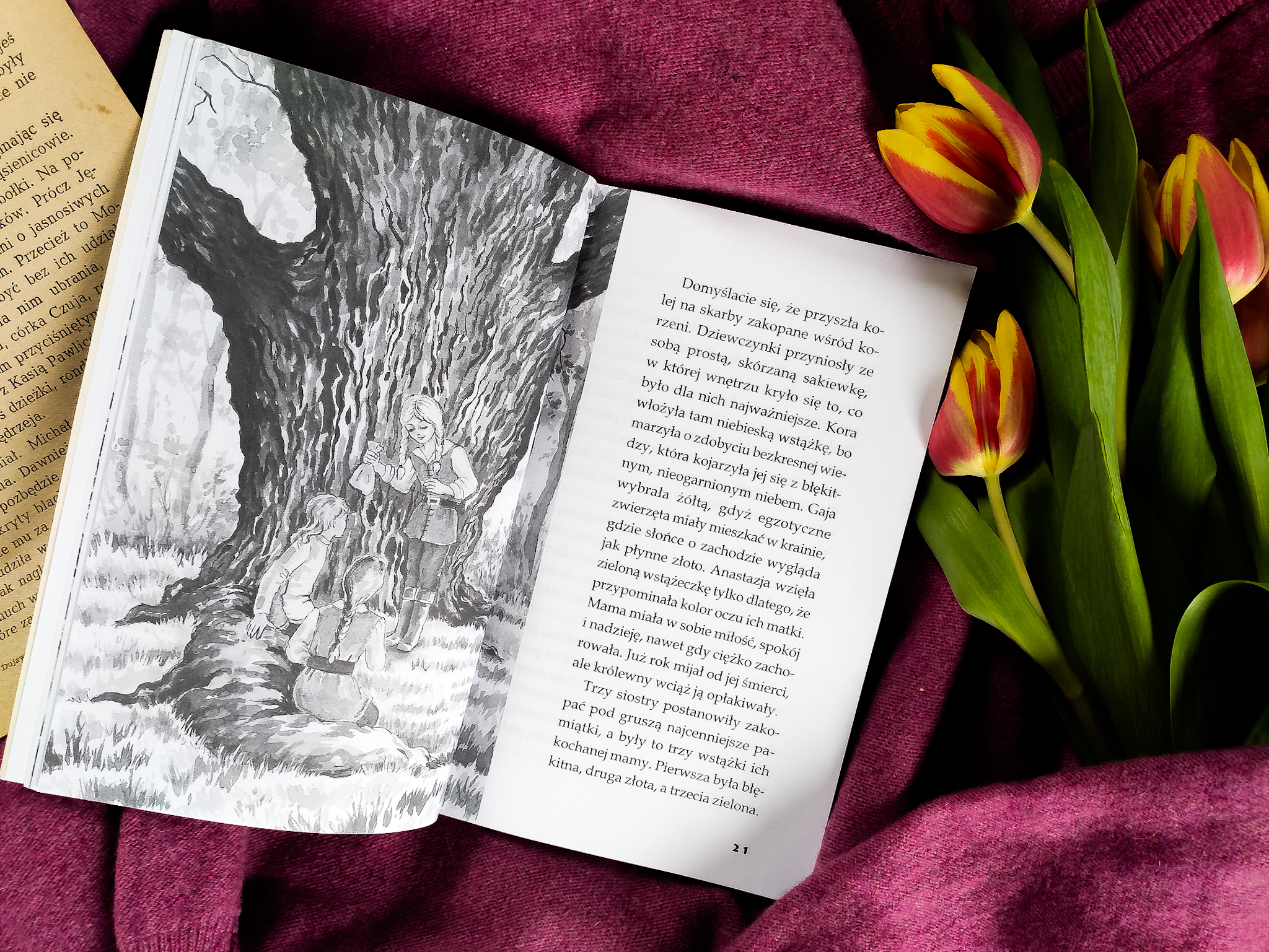 Język, jakim napisana jest ta książka, jest magiczny, melodyjny i baśniowy. Dobrze mi się tę historię czytało, bo ma ogromny potencjał, niestety, pojawiły się pewne zgrzyty i niedociągnięcia, obok których nie mogę przejść obojętnie. Autorki miały znakomity pomysł, ale trudno było im zgrabnie ująć ten upływ czasu, jaki dzielił Mirana i jego potomków. Czytając kolejne baśnie, które składały się w całość, miałam wielki problem z tym, żeby nie pomylić królestw, bohaterów, królów i królowych. Gdzieś w połowie książki zorientowałam się, że czuje się, jakbym czytała zarys książki, na której zamierzają opierać się autorki, aby stworzyć monumentalną, pełną przygód baśniową historię. Szkoda, iż tak się nie stało.