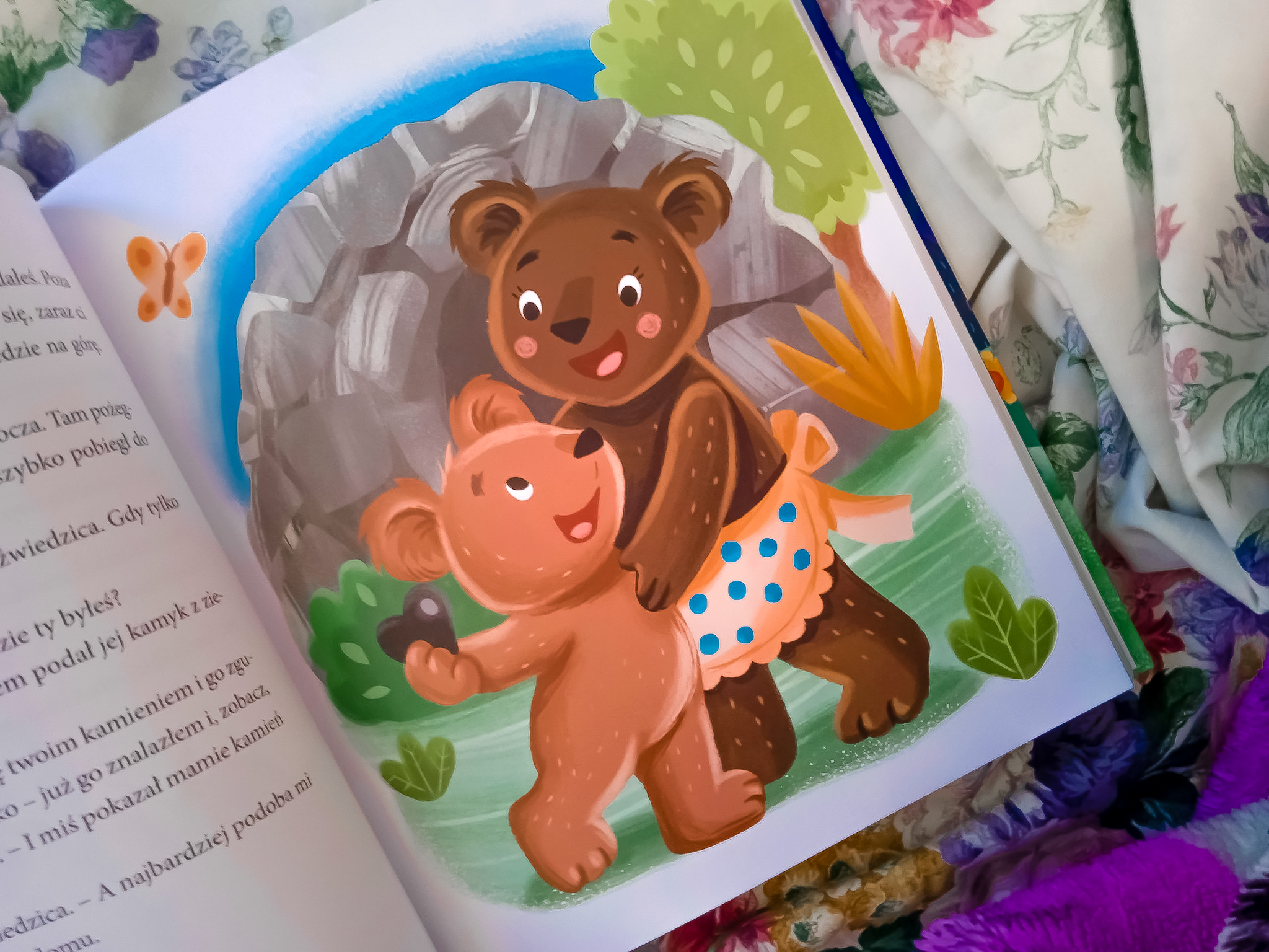 Bajki, oprócz tego, że są atrakcyjnie napisane, zawierają w sobie jakiś morał. Dzieci dowiadują się, że pomaganie jest ważne, albo, na podstawie zachowań bohaterów, zaobserwują, dlaczego nie warto się źle zachowywać. To cudowna książeczka, która może Was skłonić do wspólnych rozmów. Dodatkowo książeczka została pięknie wydana – urocza ilustracja na okładce przyciąga wzrok, a piękna szata graficzna uzupełnia treść.