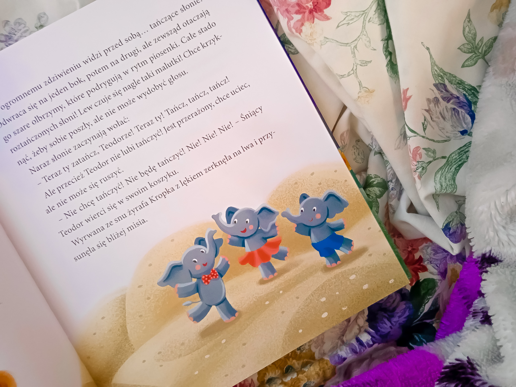 W środku znajdziecie kilkanaście historyjek, które zachwycają i co najważniejsze, wyciszają. Nie wiem, jak autorka to zrobiła, ale nawet gdy czytam je na głos, wszystko jest tak melodyjne i uspokajające dla mojego syna, że aż brakuje mi słów zachwytu. Codziennie poznajemy po dwie, trzy historyjki, a także i bohaterów wymyślonych przez autorkę, maluchy przeżywają niesamowite przygody. W książce znajdziecie dwadzieścia jeden historyjek, które nie zajmują więcej czasu niż dziesięć minut, co również uważam za plus, ponieważ maluchy, które nie lubią długich form, również z chęcią wysłuchają ciekawych opowieści.